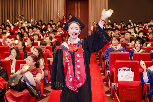 校党委书记曹锡康宣读2025届优秀毕业生名单,副校长舒静宣读2025届学生学位授予名单,副校长王拥军宣读2025届优秀学位论文获得者名单,主席台就座的各位领导和嘉宾为优秀毕业生和优秀学位论文获得者颁奖颁证,并为全体毕业生颁发证书和正冠拨穗。