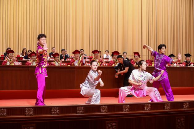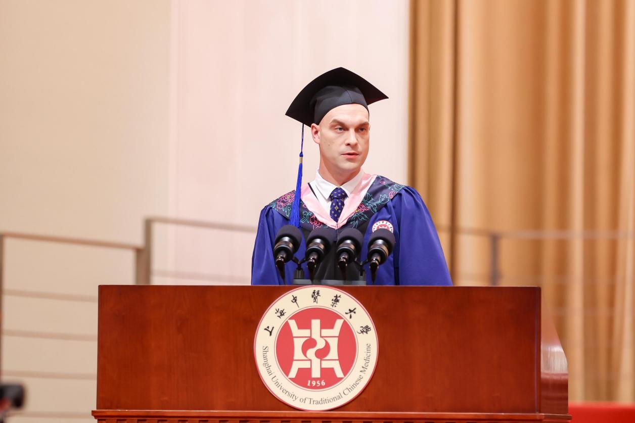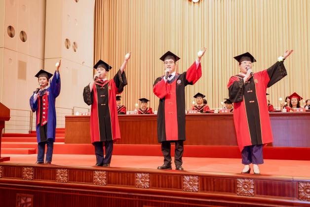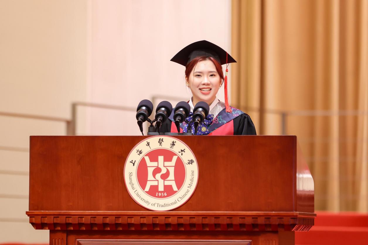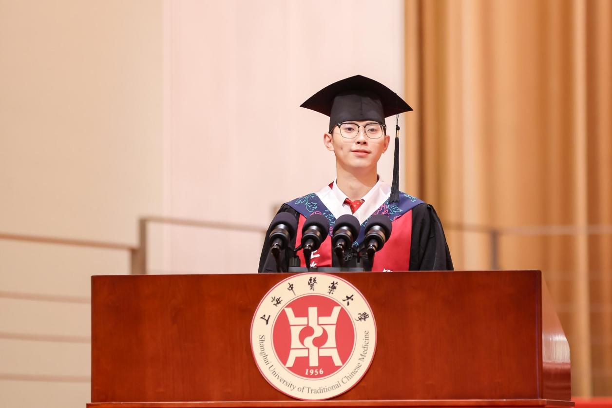毕业生代表、中药学院博士研究生刘珍达用十年光阴见证和参与了学校中药学科的飞速发展,也实现了从懵懂少年到岐黄青年的转变,让杏花绽放为繁花。国际教育学院美国籍留学生周安主动担任中华优秀传统文化的传播使者,让杏花携手玫瑰花,实现了学业与生活的双丰收。来自龙华临床医学院本科毕业生周宏宇退役不褪色,在保家卫国和守护人民健康的朴素实践中,让杏花相遇紫荆花,书写了一段别有滋味的青春故事。