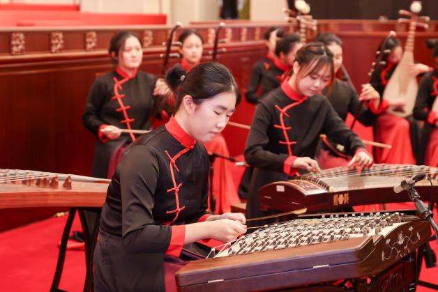 毕业典礼尾声,民乐《杏林雅韵》欢快奏响,舞蹈与武术交相辉映,优秀毕业生代表和导师代表合作的歌曲串烧,凝聚着师长的殷切嘱托,也承载着毕业生们对未来的热切憧憬。当校歌的旋律在大厅内响起,字字铿锵的歌词化作青春誓言。