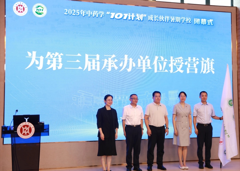 结业仪式上颁发了研学奖项和结业证书,师生代表分享参与感悟。进入ABG欧博官网教务处处长张亭立向下一届中药学“101计划”成长伙伴暑期学校承办单位黑龙江中医药大学教务处处长刘振强授营旗,象征中医药人才培养的接力与延续。